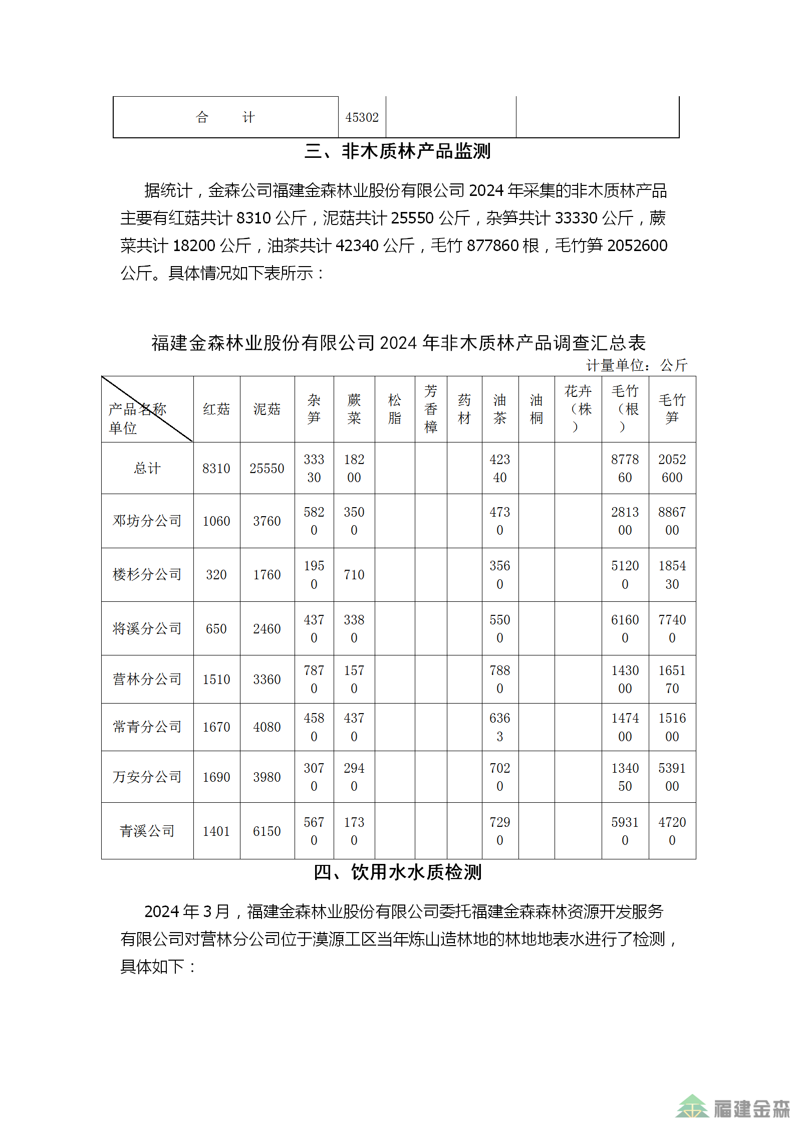 金森公司2024年監測結果