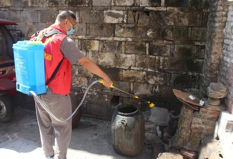 使用噴霧器和專業(yè)滅殺藥劑深入各基層單位,選擇容易孽生蟲卵,成蚊的閑置水池積水、廢棄容器積水、污水坑,進行化學滅殺。